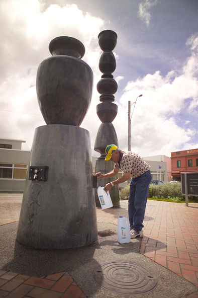 A local spring water aquifer is pumped to the surface here and these works function as place to collect the water.